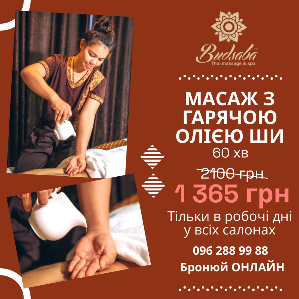 Масаж з гарячою олією Ши 60 хв зі знижкою -35%, лише 1365 грн
