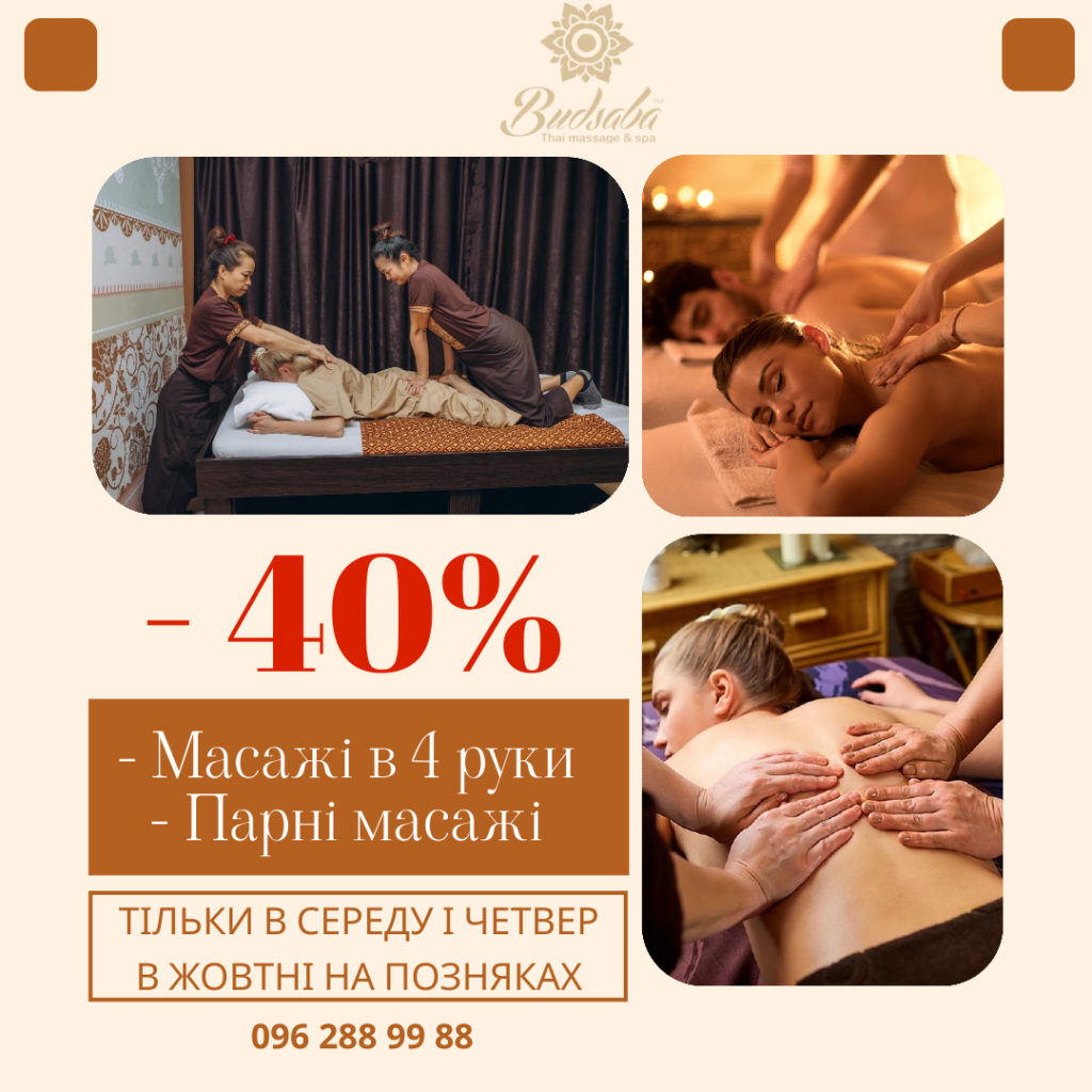 Знижка — 40% на всі парні масажі і масажі в 4 руки
